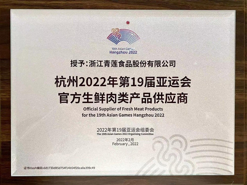 青蓮食品成為杭州2022年第19屆亞運(yùn)會官方生鮮肉類產(chǎn)品供應(yīng)商